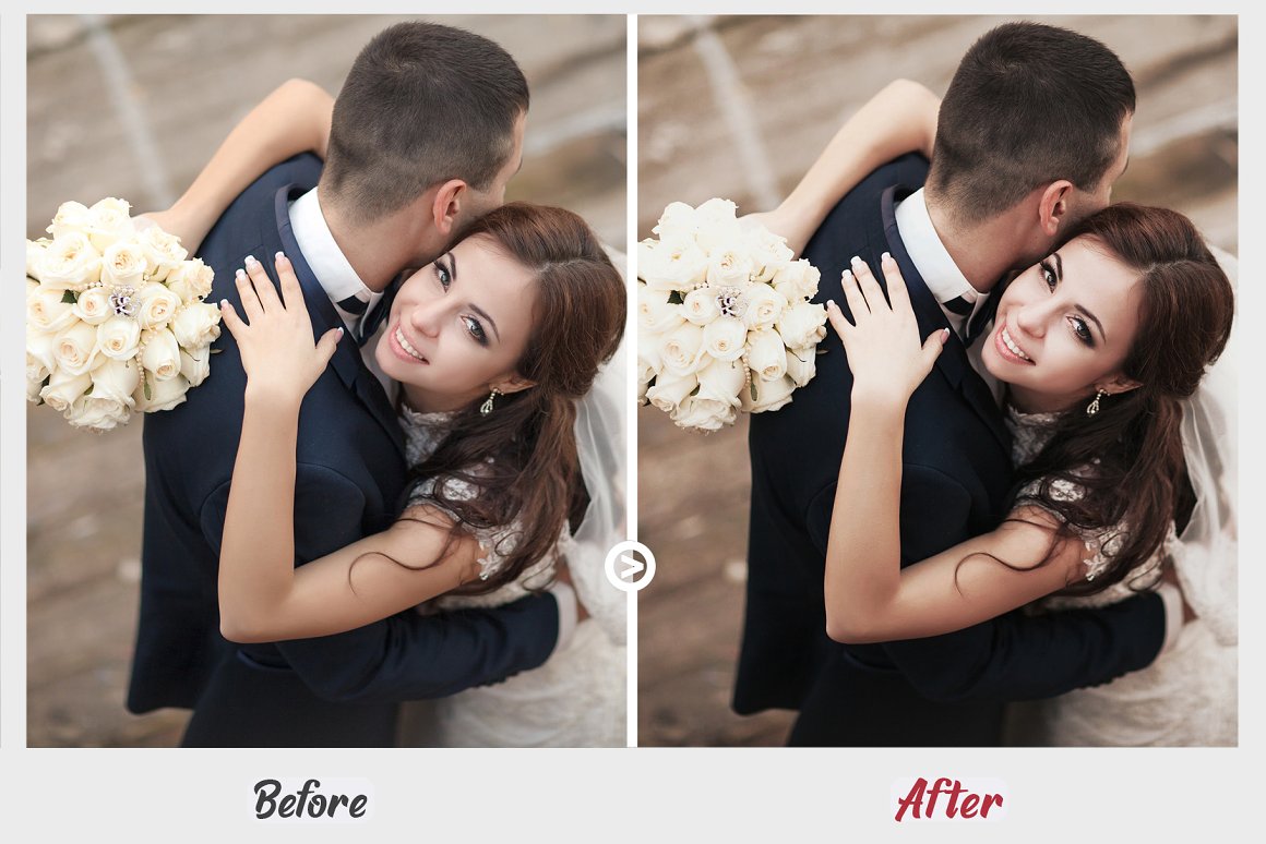 تصاویر قبل و بعد از ادیت با اصلاح رنگ پریمیر Cinematic Wedding :